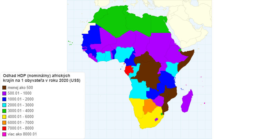 Odhad HDP (nominálny) afrických krajín na 1 obyvateľa v roku 2020 (US$), https://en.wikipedia.org/wiki/List_of_African_countries_by_GDP_(nominal), viewed 31st December, 2020.
