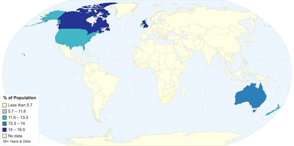 % of population 65+