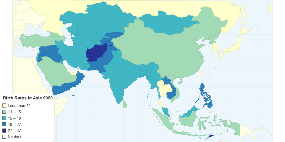 Birth Rates in Asia 2020