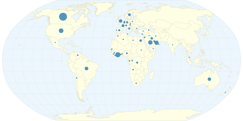 The estimated number of Lebanese expatriate voters for the 2013 elections, by country.