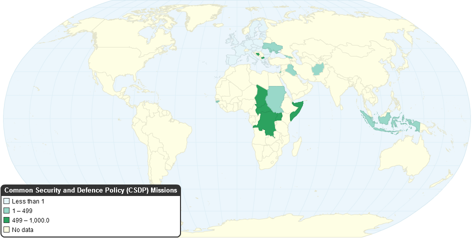 Since 2002 the European Union has become increasingly active abroad under the Common Security and Defence Policy (CSDP). As of February 2008, it has engaged in nineteen operations, using civilian and military instruments in several countries in three continents (Europe, Africa and Asia). Ten of these operations are currently ongoing; two more are planned.