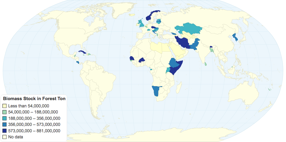 Biomass Stock in Forest (Ton)= Biomass stock refers to organic material both above-ground and below-ground, and both living and dead, e.g., trees, crops, grasses, tree litter, roots etc.; including the pool definition for above - and below - ground biomass. ha within all forest land, other wooded land not included.