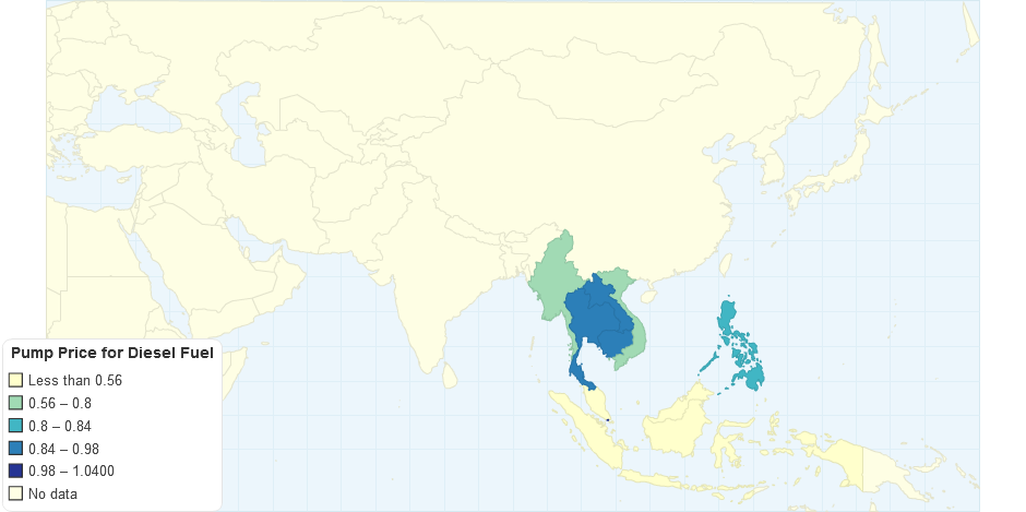 Pump Price for Diesel Fuel for ASEAN Countries, based on World Bank data 2010