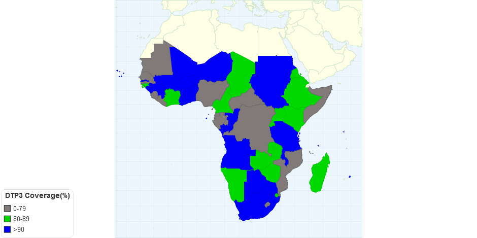 Dtp3 Coverage by Country for Sub Saharan Africa 2010