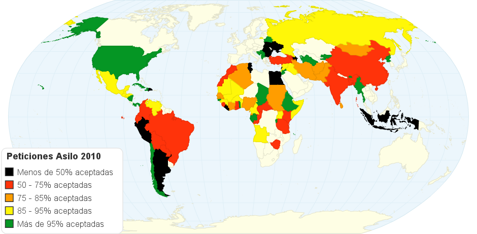 Peticiones de asilo aceptadas y no aceptadas por España en 2010