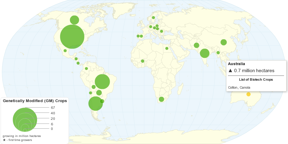 - Current World hectarage of biotech crops: 148.6 million hectares in 2010