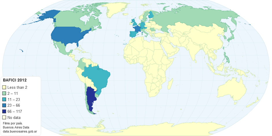 Films proyectados en el Buenos Aires Festival Internacional de Cine Independiente (http://bafici.gov.ar) del 11 al 22 de abril de 2012, según su país de origen. Además, información adicional de las dos últimas ediciones.