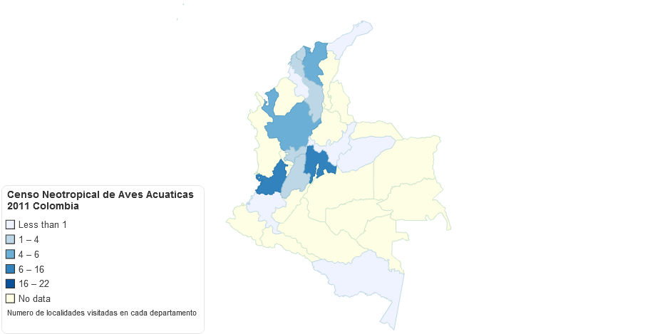 Localidades visitadas durante el Censo Neotropical de Aves acuáticas realizado en Colombia en febrero y julio de 2011