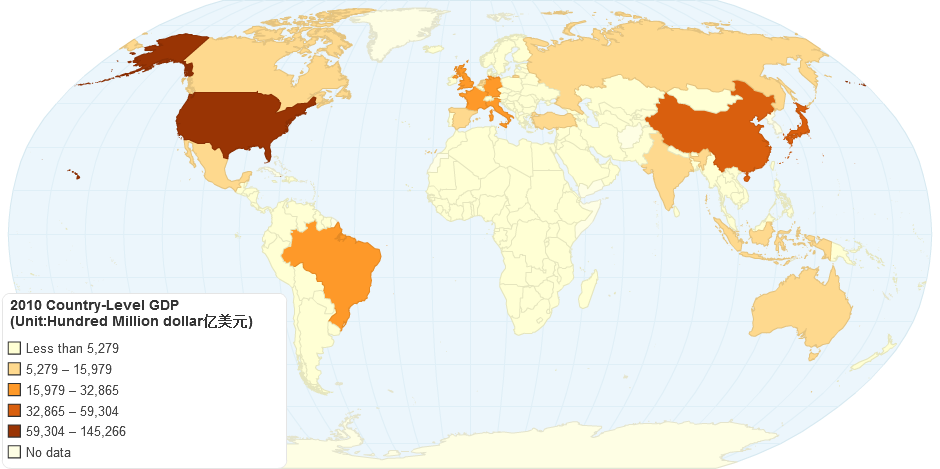 2010 Country-Level GDP (Unit: Hundred Million Dollar亿美元)
