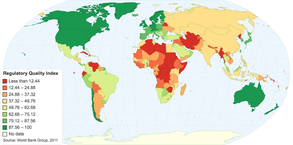 This Index captures perceptions of the ability of government to formulate and implement sound policies and regulations that permit and promote private sector development. It ranges from 0 to 100 (higher values indicating better outcomes.