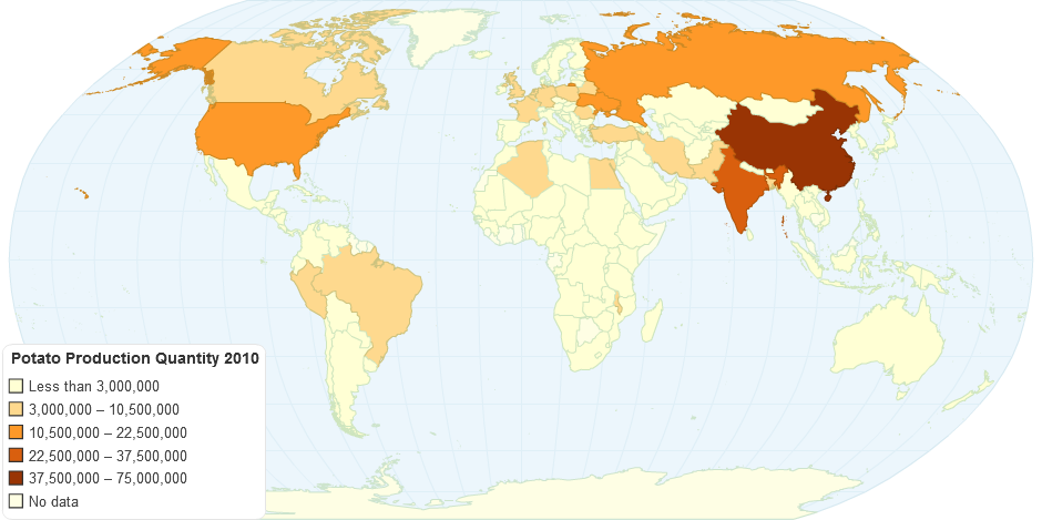 visualizing world potato production quantity in 2010