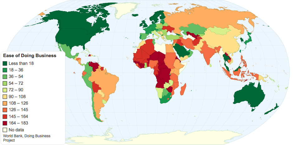 Ranking of economies from 1 to 183, with first place being the best. A high ranking (a low numerical rank) means that the regulatory environment is conducive to business operation. The index averages the country's percentile rankings on 10 topics covered in the World Bank's Doing Business. The ranking on each topic is the simple average of the percentile rankings on its component indicators.