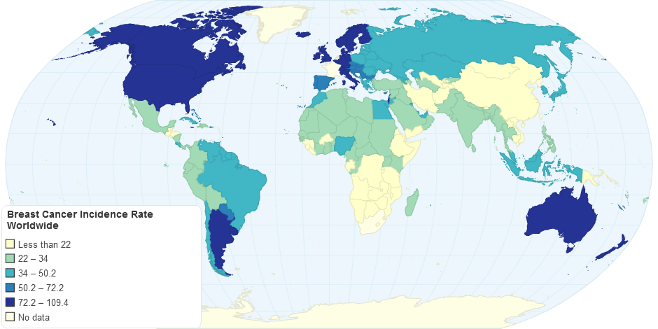 Breast Cancer Incidence Rate Worldwide, ChartsBin.com, viewed 2nd January, 2026, <http://chartsbin.com/view/7345>.