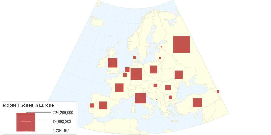 Number of mobile phones located in various markets in Europe - maps produced by mobile phone insurance provider insurance2go.