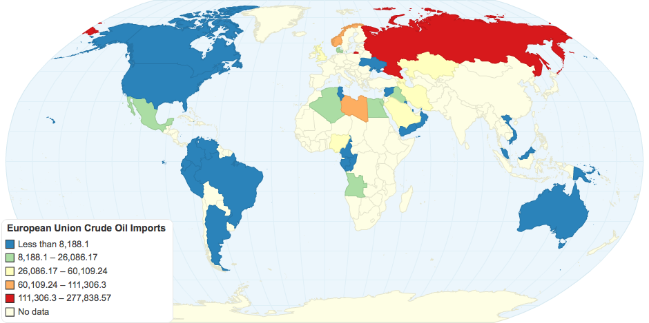 Figures represent volume of total imports into the EU (in 1000 bbl). 2011 data is only available for the first 3 months. Data is available at the Directorate General for Energy's Statistics and Market Observatory.