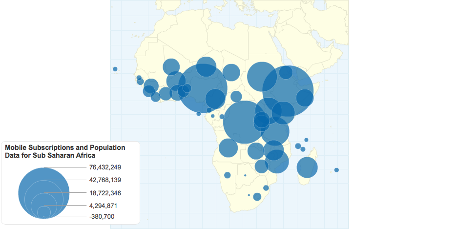 This map shows the population without mobile phones. For every mobile phone, an additional .8 percentage point is added to GDP growth. The countries with the largest populations without mobile phones stand to gain the most from growing mobile penetration.