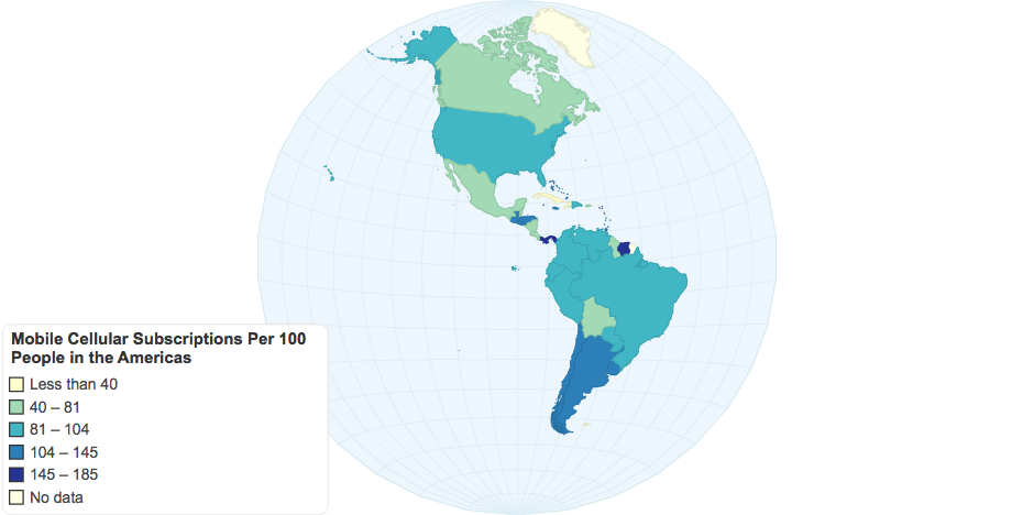 Mobile Cellular Subscriptions Per 100 People in the Americas