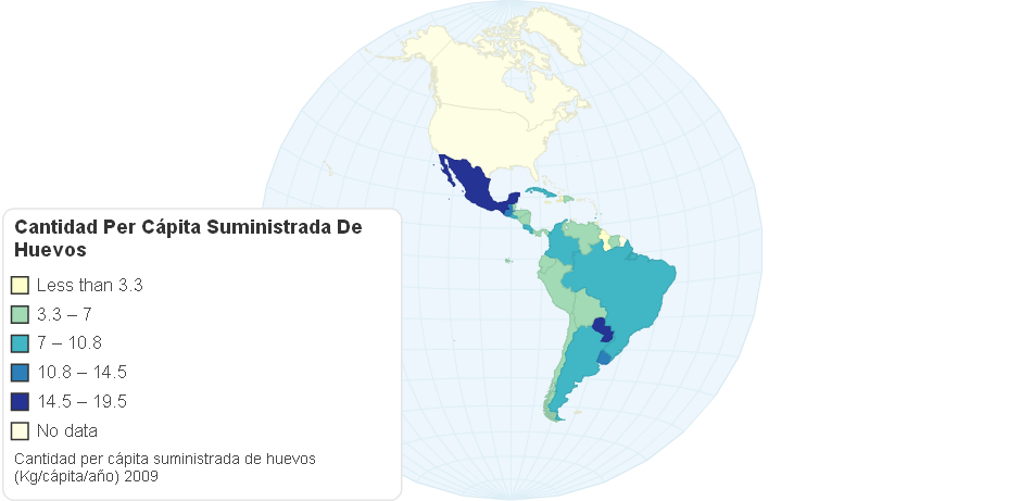 Cantidad per cápita suministrada de huevos (Kg/cápita/año) 2009 D. R. ALA