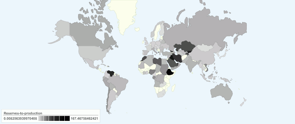 This chart shows the Current World Reserves-to-production ratio of Oil.
