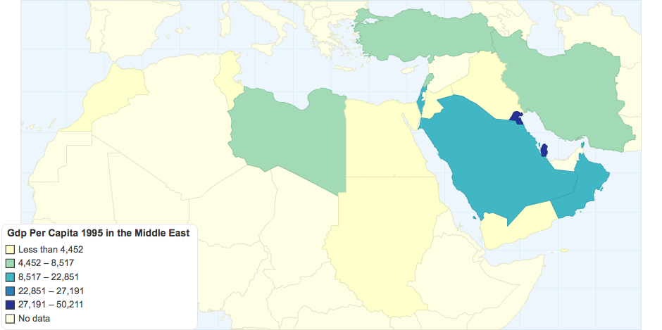 Gdp Per Capita 1995 in the Middle East, created by Grace Atkinson