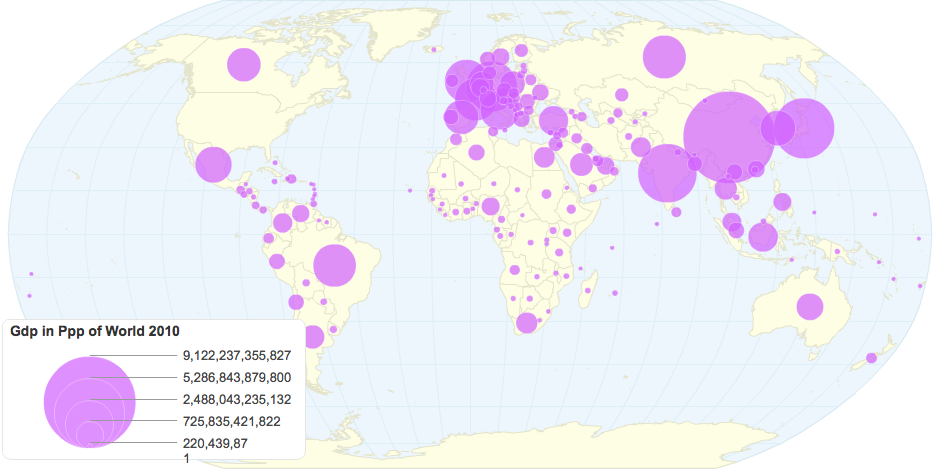 GDP in PPP$ of World 2010, Created by Grace Atkinson, Source - World Bank
