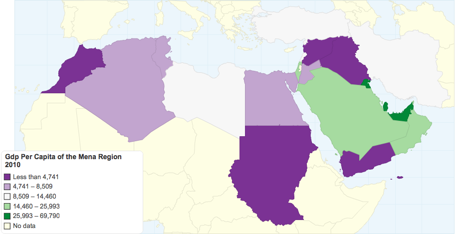 Gdp Per Capita of the Mena Region 2010, Created by Grace Atkinson, Source, World Bank.