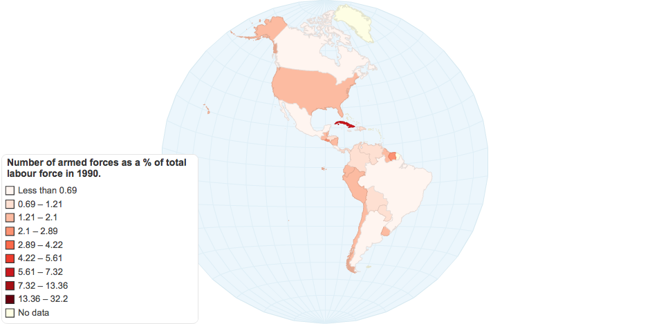 Number of armed forces as a % of total labour force ...