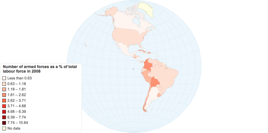 Number of armed forces as a % of total labour force in 2008.