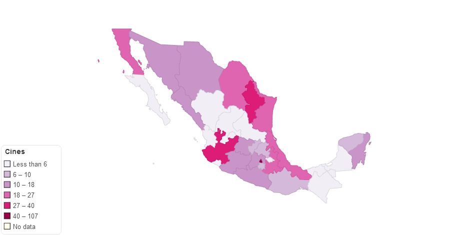 Numero de cines dentro de México