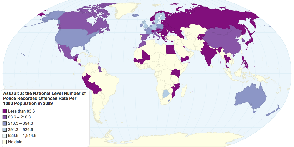 Assault at the national level, number of police-recorded offences, Rate per 100,000 population, UNDOC, viewed 26th November, 2012.