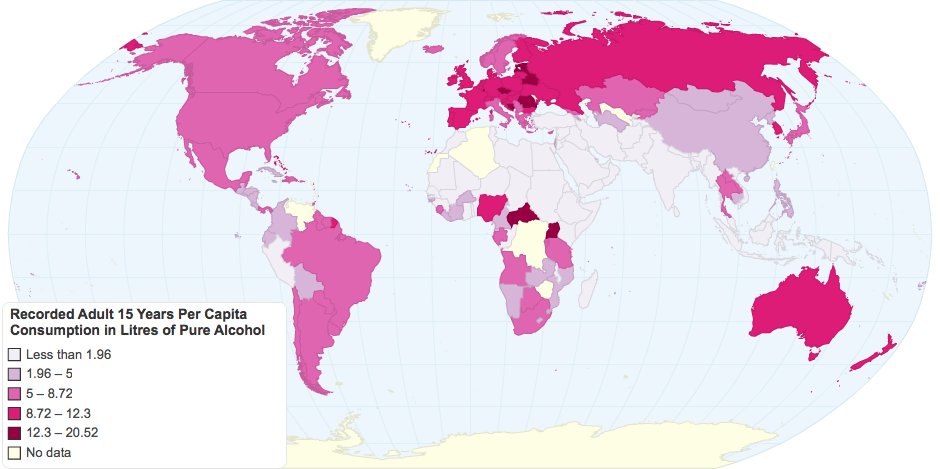 Recorded Adult 15 Years Per Capita Consumption in Litres of Pure Alcohol