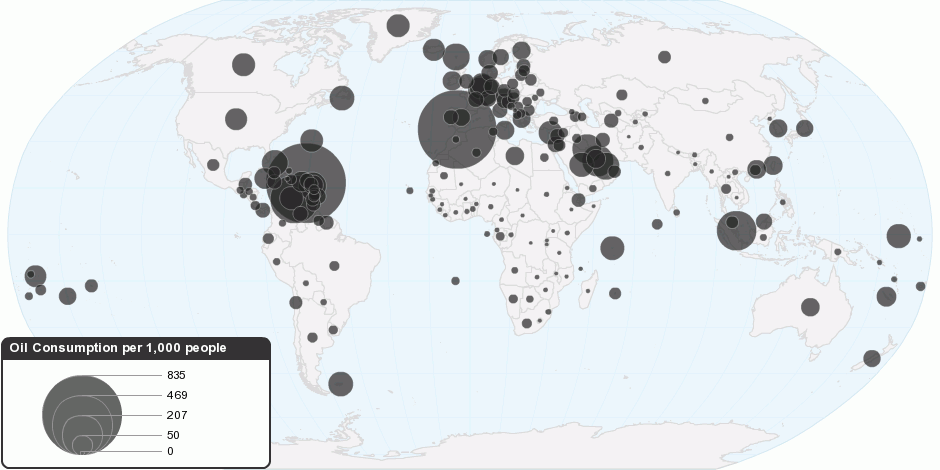 Current Oil Consumption in the World: 31.1 barrels per day (bbl/day) per 1,000 people