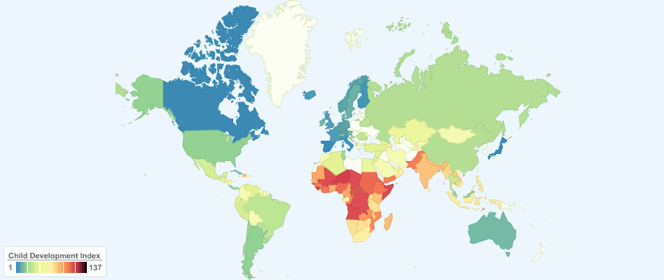 This chart shows the Child Development Index (CDI) around the world.