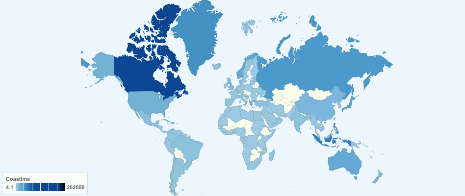 This entry gives the total length of the boundary between the land area (including islands) and the sea.