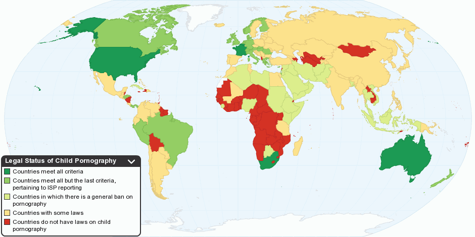 | India | Yes | No | Yes | Yes | No | browsing for child pornography on the internet can lead to a 10 year term in jail and Rs. 1 million fine |