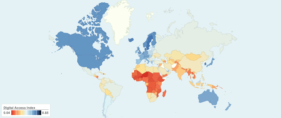 Digital access allows individuals and communities to access information on changing weather patterns, current events, disasters and early warning systems, as well as general information on agriculture and markets to facilitate adaptation. Digital access is also important during all phases of disaster response. A high score on the Digital Access Index suggests reduced vulnerability and increased adaptive capacity to climate change.
