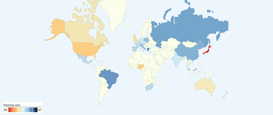This chart shows worldwide percentage of people having sex weekly.