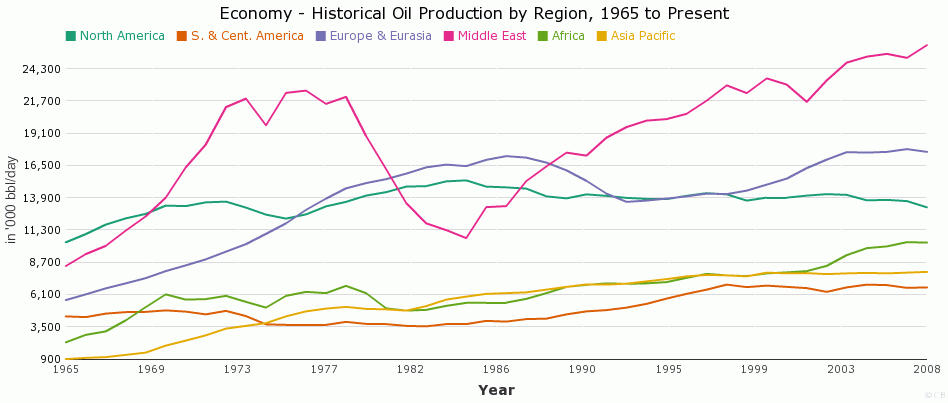 This chart shows the historical Oil Production - 1965 onwards.